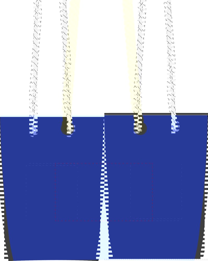 Ab zum Strand. Tolle Polyester-Tasche mit Innenbeschichtung aus PVC, zwei Tragehenkeln aus dicken Baumwollkordeln (15 mm Durchmesser) und Metallösen an den Löchern für die Henkel. Das weiße, eingenähte Täschchen und die Tasche selbst sind mittels Reißverschluss inkl. Zipper Puller zu verschließen. Großes Füllvolumen durch den breiten Boden.